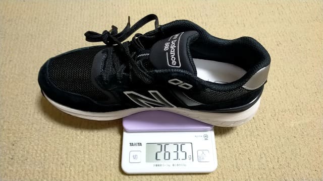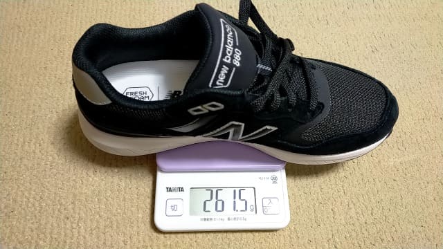 WW880の25㎝/Dは左足約261g、右足約263gでした。